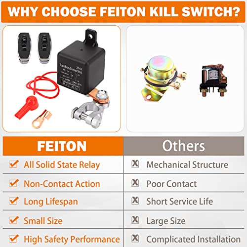 - Calidad premium - El interruptor de matrícula para coche está hecho de contactos de plata y cables de cobre puro. Duradero y confiable. Corriente nominal 200A DC12V, este aislador de desconexión de batería está mejorado desde el modelo antiguo ya que los accesorios de montaje son más fuertes. Todos los arneses de cableado necesarios están incluidos, no es necesario comprar accesorios adicionales.