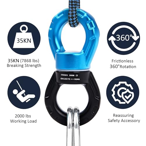 - 【Safer For Swinging】Made of 7075 aviation aluminum (forged aluminum magnesium alloy), the breaking strength of PACEARTH swing swivel is up to 35KN( 7868 lbs), which is stronger more durable. With recommended working load limits, it provides a safe swinging experience.