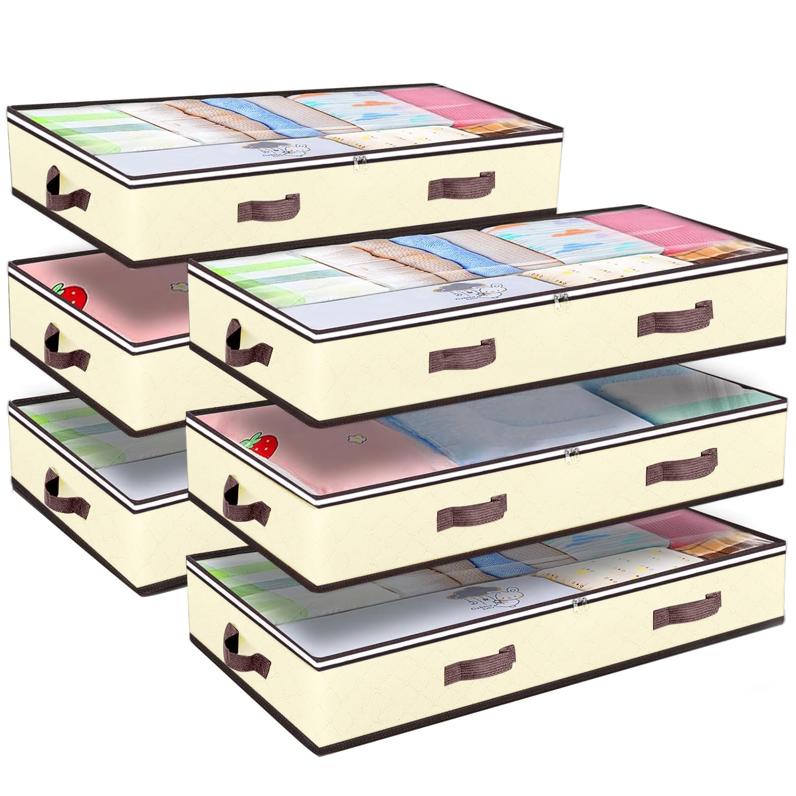 - 【Clear Window】The storage bins has large transparent see-through PVC window, which helps you to locate your items at a glance, easily access to what you need. The under-bed organizer used under beds, in closets, on shelves or under sofa. A good choice for room organization and storage.