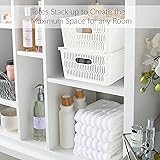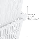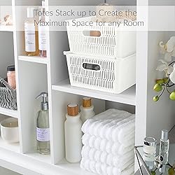 Simplify 4Pk Large Slide 2 Stack It Tote Basket | Storage & Organization | Open Bins with Stackable Capability | Bathroom | Crafts | Pantry | Playroom | Office | White (KIT-25930-WHITE-4PK)