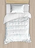 Ambesonne Programmer Duvet Cover Sets, Cryptography Programming Themed Matrix Digital Binary Falling Code Rain, Bedding Set with 2 Duvet Covers 4 Pillowcases, 2 Pack Cal King Size, White and Sea Blue