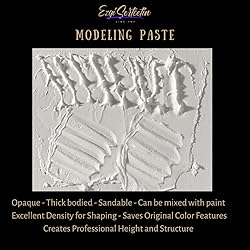 - Premium Modeling Paste | 8 oz | Lightweight Product | Ideal for Artwork | Perfect Density | by Ezgi Sertcetin is white | opaque based and gives structure and height to any project.Unique formula allows perfect density .Add acrylic paint, ink or pigment to create your own color. It has the Slow Drying Feature and allows to work on it as long as you need before it gets dry. It gets hard as stone when totally dried. Please wait until it is dry to paint over it.The paste protects and saves the original added color features so you don’t get any surprise.The Modeling Paste is Lightweight, which allows a better grip and hold on almost all surfaces, and is 8 oz by volume. If you want to use our product with another material like gesso or similar (due to several types and different components of each material) we highly recommend to try on a small area first before applying to the whole project.