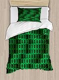 Ambesonne Programmer Duvet Cover Sets, Computer Data Bits Process Themed Greenish Binary Programming Code Printing, Bedding Set with 2 Duvet Covers 4 Pillowcases, 2 Pack Cal King Size, Green Emerald