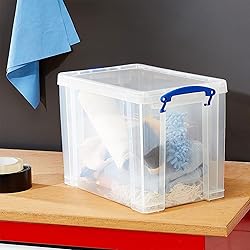 - Introducing the versatile and reliable Really Useful Box Storage Containers. These 19-liter containers will meet your organizing needs with utmost convenience by providing enough room to store and organize various items in your home or office. With just a glance, you can identify the contents of the box without the need to open it, saving you time and effort thanks to its transparent design. Whether sorting through office supplies, decluttering your craft room, or storing miscellaneous household items, these clear storage bins provide a practical solution to keep your space tidy. Carrying these organizer boxes around is a breeze thanks to the built-in clip-lock handles. The snap lid mechanism ensures that the contents remain secure and protected, eliminating any accidental spills or messes. Plus, the durable plastic construction guarantees long-lasting use, even with regular handling and storage. The 19-liter capacity of these bins provides ample storage space for DVDs, office and art supplies, or small toys without taking up too much room in your home. Simplify your life with the 2 Really Useful Box 19-Liter Storage Containers, a practical storage solution that combines functionality, durability, and style.