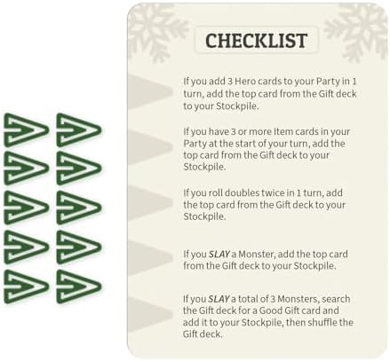 Spread holiday cheer with this Here to Slay expansion, Here to Sleigh! The Here to Slay: Here to Sleigh Expansion Pack is designed to be added to your Here to Slay Card Game. This pack includes 20 standard-sized cards, 22 Gift cards, 4 Holiday Overlay cards, 4 Checklist cards, 10 Checklist clips, and 1 rule book. Here to Slay was one of Kickstarter’s top 50 most backed projects of all time!