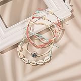 FANCY SHINY Wave String Bracelets Braid Puka Shell Bead Bracelets Handmade Cute Trendy Boho Easter Jewelry Gifts for Women