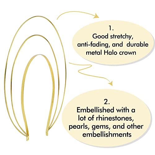 - [Excellent Workmanship]: This multi-layer metal Halo crown headband, by using high-quality metal to create a good stretchy, anti-fading, and durable. The angel halo crown hair band can be embellished with a lot of rhinestones, pearls, gems, and other embellishments, this metal halo headband is very good weight-bearing and will not easily break off.