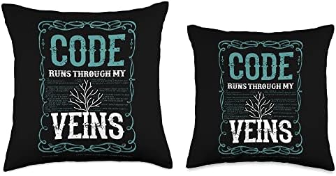 Code Runs Through My Veins Funny Programmer Computer Throw Pillow