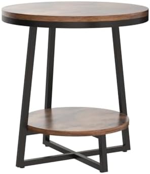 Tribesigns End Table, 2 Tier Round Side Table with Storage Shelf, Industrial Nightstand Bedside Table Coffee Accent Table for Living Room Bedroom Small Space, Rustic Brown