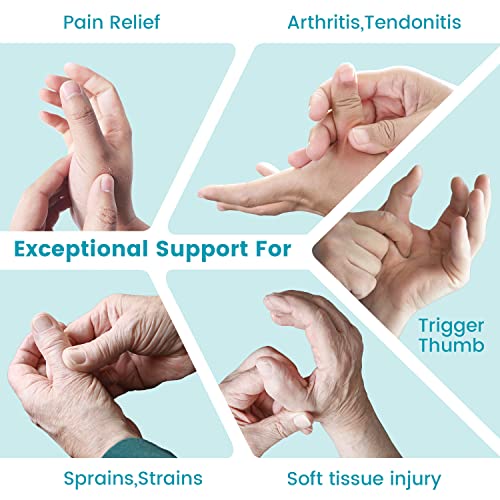 - 【Stable Support for Thumb and Pain Relief 】This thumb splint supports the thumb knuckle and ligaments, limiting movement of the thumb while providing adjustable pressure. It can be used in the adjunctive treatment of trigger thumb, de quervains tenosynovitis, broken thumb, tendonitis, thumb joint pain relief, thumb sprain, texters thumb, thumb soft tissue injuries, thumb ligament strains, and skier's thumb. It is also good for those who frequently play mobile games or consoles.