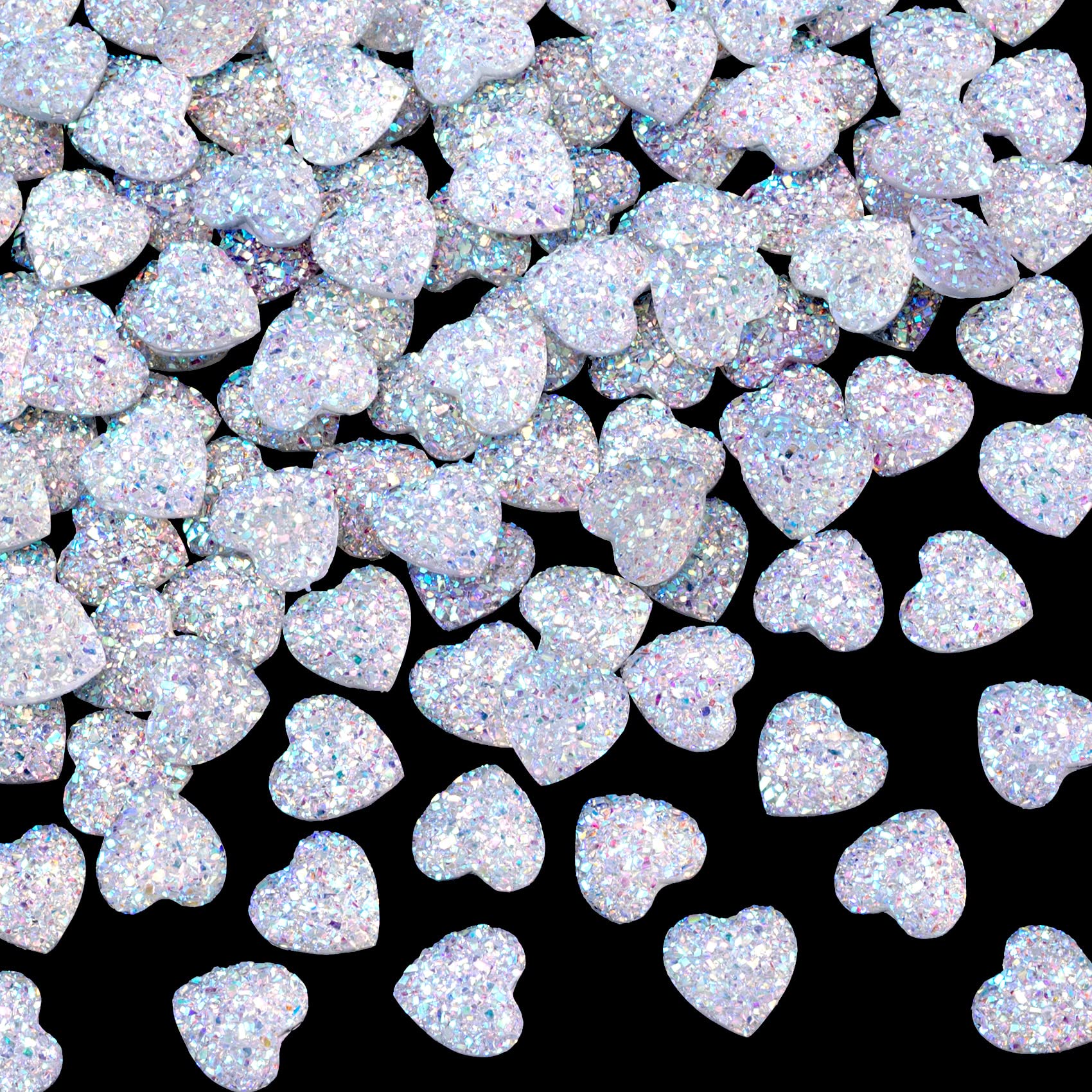 PAGOW 150pcs Valentines Heart Rhinestone Charms AB Rainbow Beads Resin Crystal Gems Card Making Embellishment for Necklace Earring Bracelet DIY Crafts Decoration Christmas Wedding Supplies 12mm