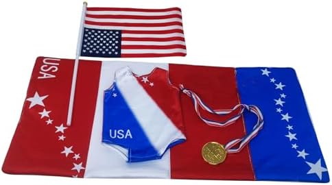 - 4 PIECE SET: 4 Piece Gymnastics Doll Set included Leotard Outfit,Gold Medal, small Flag,red white and blue USA tumbling mat! Doll and Shoes Not Included.