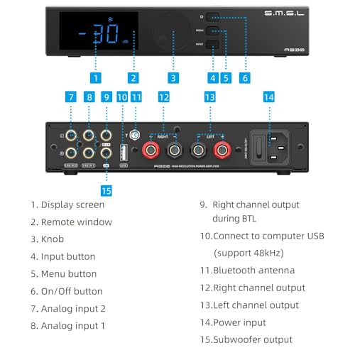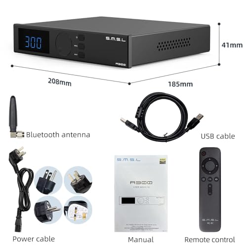 SMSL a300 Digital Power Amplifier BTL Mode Hi-Res Bluetooth 5.0 with 165Wx2(4Ω)/85Wx2(8Ω) Remote Control for Home Outdoor Passive Speaker/Active Bass Subwoofer(Black)