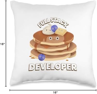 Full Stack Developer Pancakes Programmer Tees Full Stack Developer-Happy Pancakes: Programmer Design Throw Pillow, 16x16, Multicolor