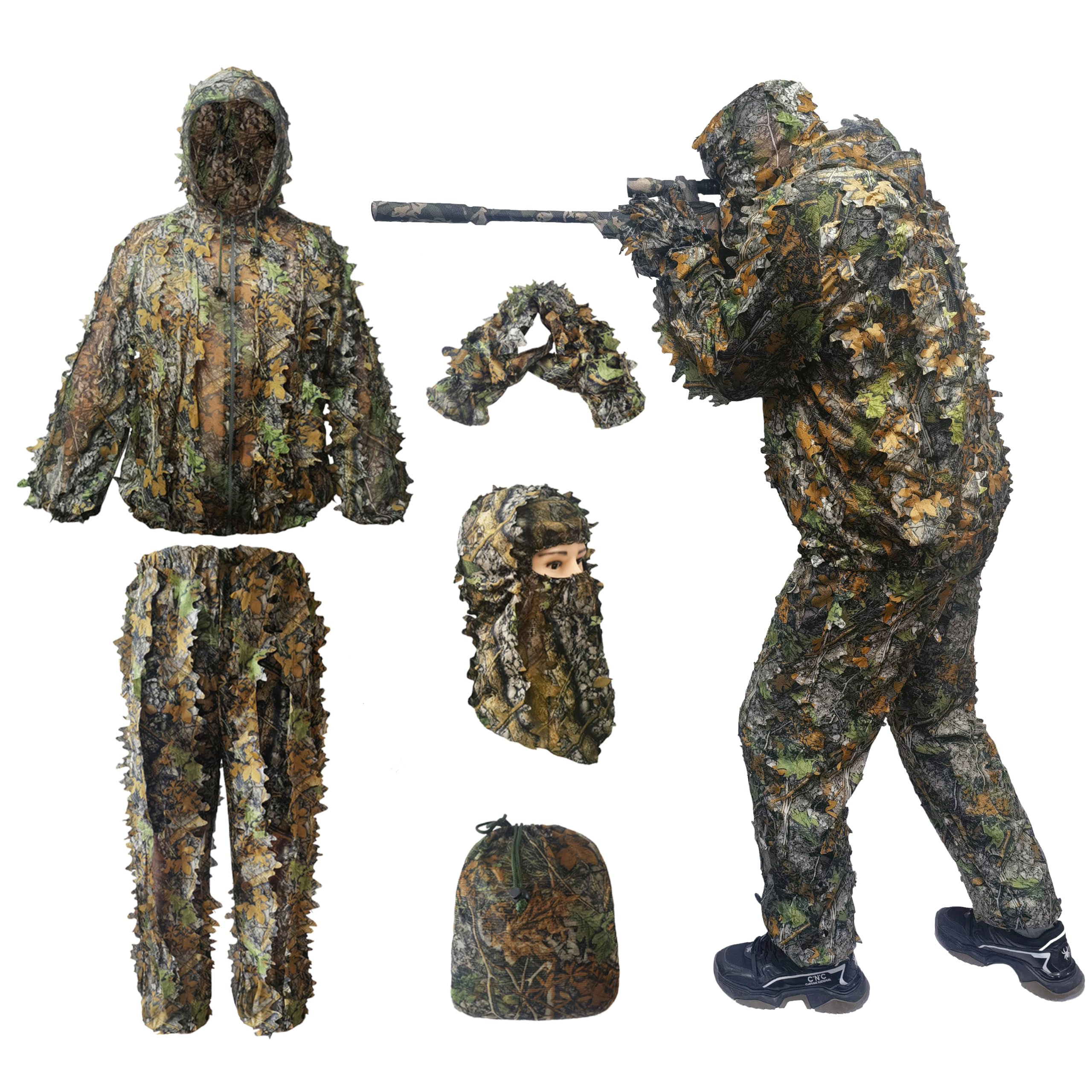 Ghillie Suit, Gilly Suits for Men, Hunting Guit, 3D Leafy Camo Suit, Hooded Cape Hunting Suit, Camouflage Suit, Bird Watching, Jungle Hunting, Halloween Party, Camping, Theme Decoration.
