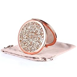 Dynippy Compact Mirror Rose Gold Makeup Mirror Folding Mini Pocket Mirror Portable Hand Mirror Double-Sided 2 x 1x Magnification for Woman Girls (Bling Rose Gold)