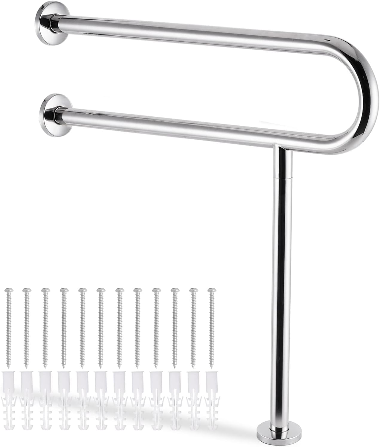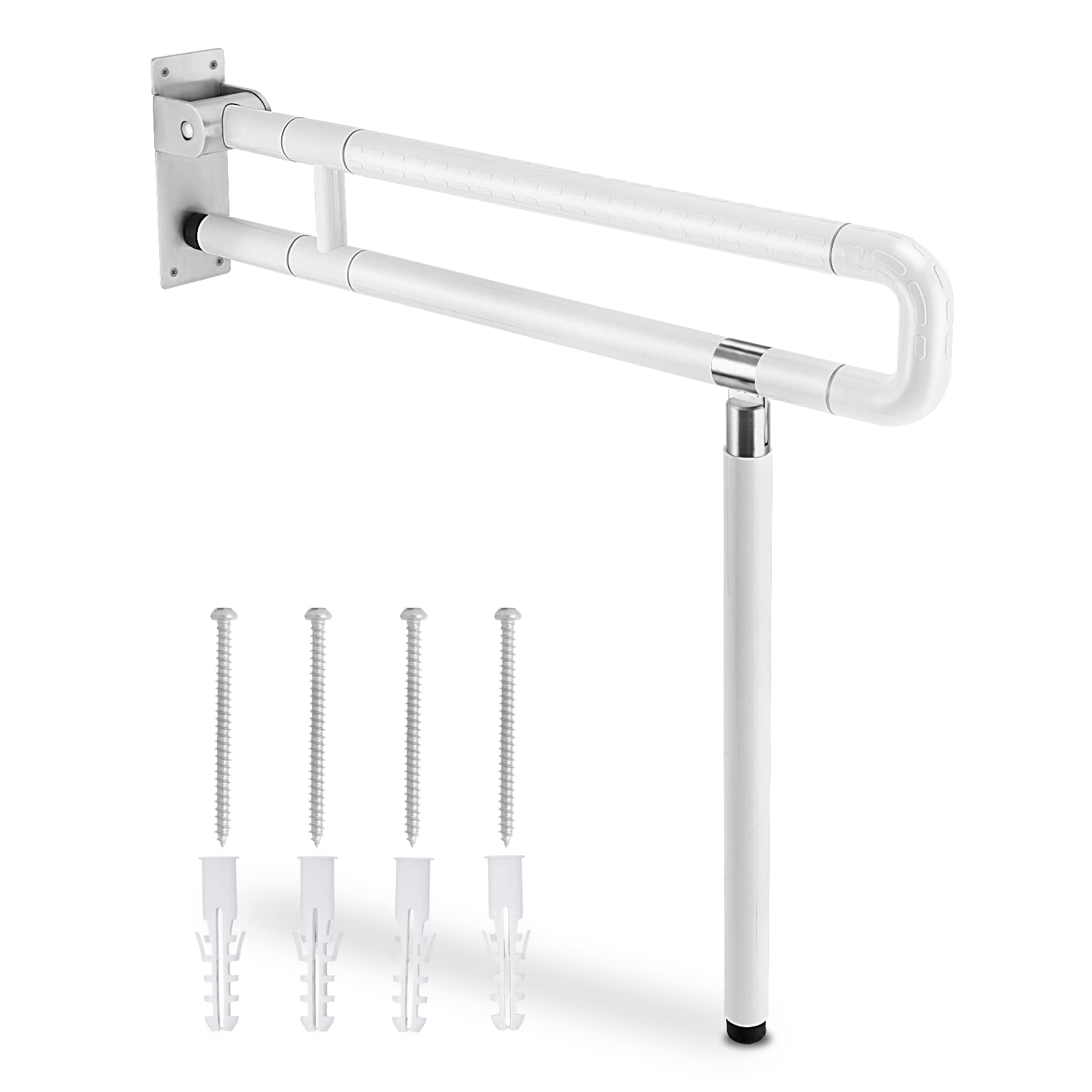 YUCHENGTECH Foldable Toilet Grab Bar 29.5 INCH Flip Up Grab Bar Handicap Grab Bars Folding Toilet Safety Rails for Bathroom with Leg Anti-Slip for Elderly Disabled Pregnant