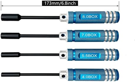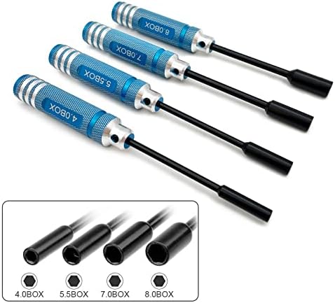 - RC TOOLBOX MUST HAVE - Four hex nut drivers with socket sizes of 4mm, 5.5mm, 7mm, 8mm. A RC tool set functions excellently for low torque applications.