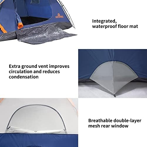 • 【Good view and ventilation】: Double-layer grid windows and sky view roof use B9 grid and a ground vent to provide better ventilation. A large D-shaped door facilitates access to the camping tent. The blue tents for camping, which symbolizes freshness and vitality, echoes nature, let you enjoy the fresh air of nature in the early morning.