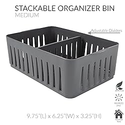 ADJUSTABLE: This organizer bin has adjustable dividers that allows you to create 3 separate sections within the organizer. STACKABLE: The stackable design allows you to create vertical storage space. You can stack these bins on top of each other to maximize your storage. MULTIPURPOSE: These bins are great for organizing any room in your home. You can use in the office for office suppliers, or in the bathroom to organize your cosmetics and other accessories. BPA FREE: The bins are BPA Free making them safe to use. DIMENSION: 9.75"x 6.25"x 3.25"