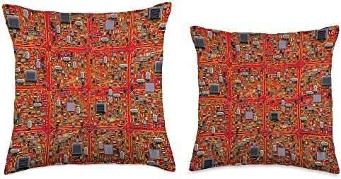 Computer Circuit Board Technology Gamer Data IT Pattern Red Throw Pillow
