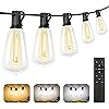 Luces de Cadena LED al Aire Libre Brightever de 100 pies con 52 Bombillas Edison ST38 a prueba de astillados, Iluminación Colgante para Porche, Deck, Jardín, Patio Trasero, Balcón, Dimmable 2700K