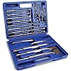 - Set Includes: 12-piece drill bits in 4 groups of different lengths and sizes; 2-piece point chisels, 3-piece flat chisels, and one storage case