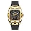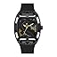 Sporting an industrial-style design, this black monochrome analog watch features a barrel-shaped case with cutout details. Complete with a genuine leather strap.