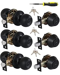 ALL KEYED SAME– Keyed Alike Entry Lock(each pack with 3 keys), allows you minimize keys in your home, all lock can be opened with same key EASY INSTALLATION: Install your door knob in a flash, SCRATCH RESISTANCE screwdriver, mounting screws and instruction are included. No need for professional door fitters, you can do it yourself! DURABLE: Confirm with ANSI Grade 3, Exceeds 200,000 cycles. Black finish stainless steel knobs with high-grade copper lock and keys, high quality,durable, and resist corrosion. ONE SIZE FITS MOST: This round door knob and single cylinder deadbolt lockset fits 1-3/8" to 1-3/4" doors. Use it for your front door entry, backdoor, bedroom door, or wherever you see fit. Service:please check these parts before install,If there is any quality problem with your purchasing, please contact us. We will refund the item value.If you encounter any problems, please contact us and we will reply to you within 24 hours.