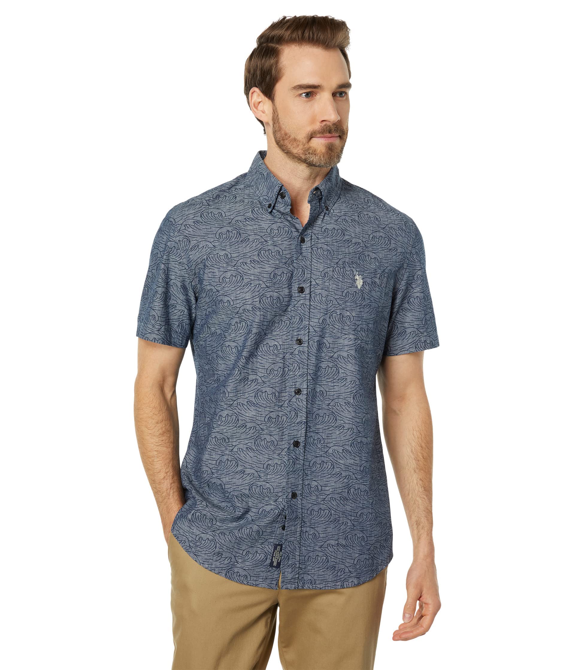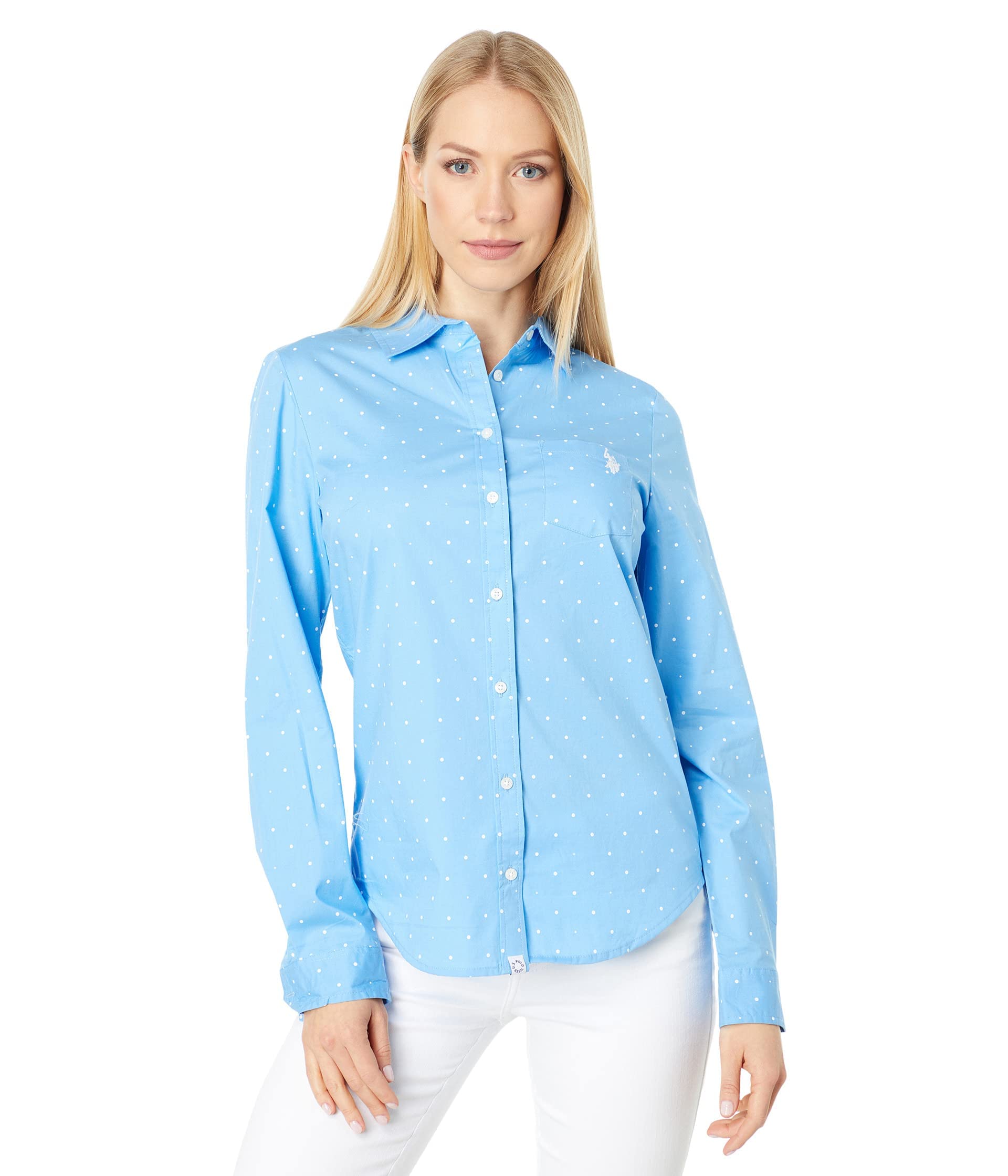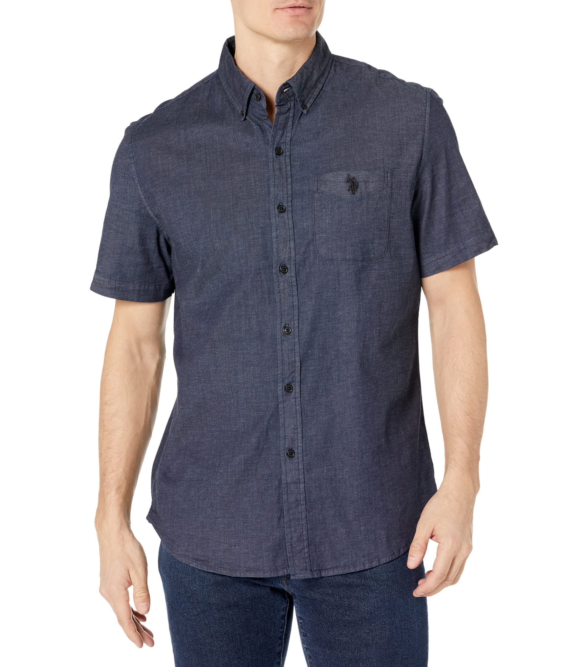U.S. Polo Assn. Long Sleeve Classic Fit Yarn-Dye Poplin Heather Woven Shirt White SM