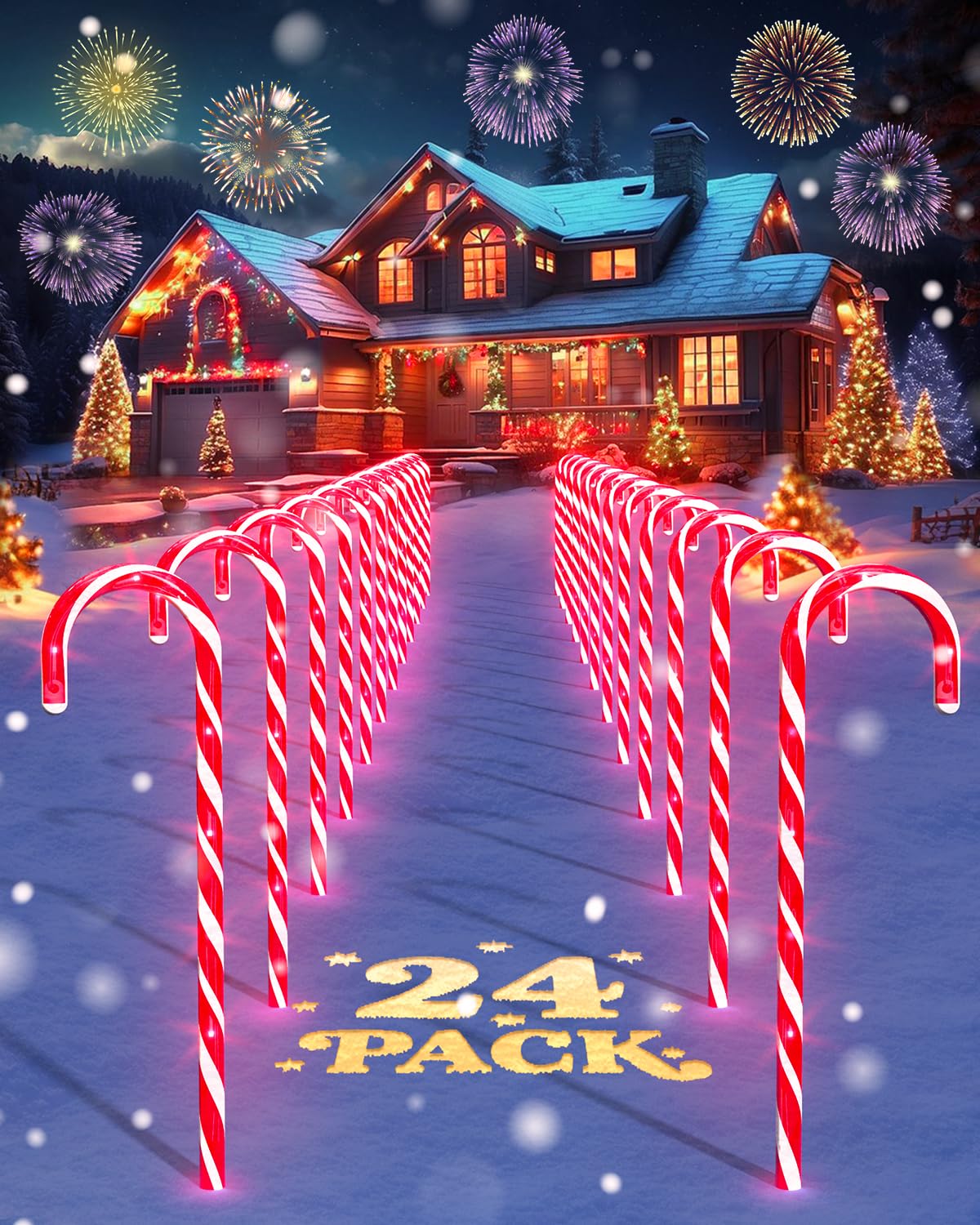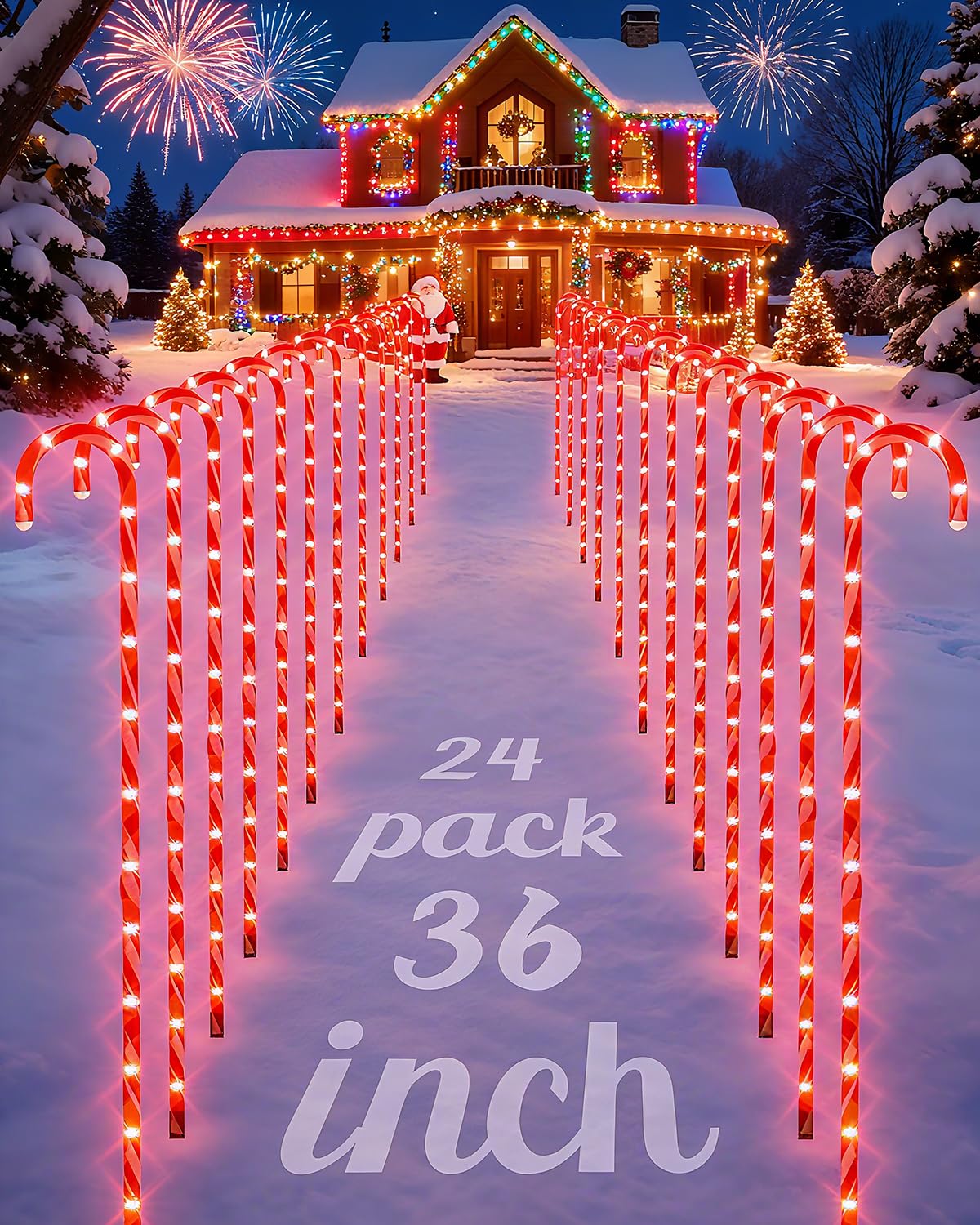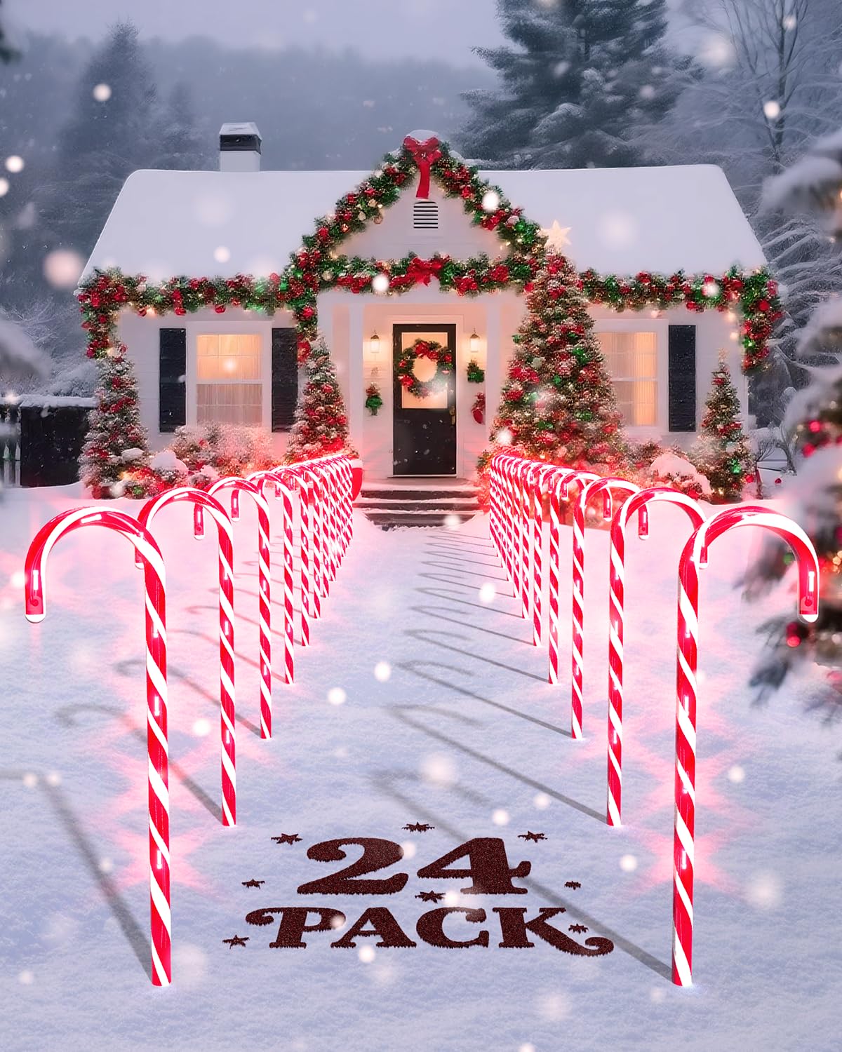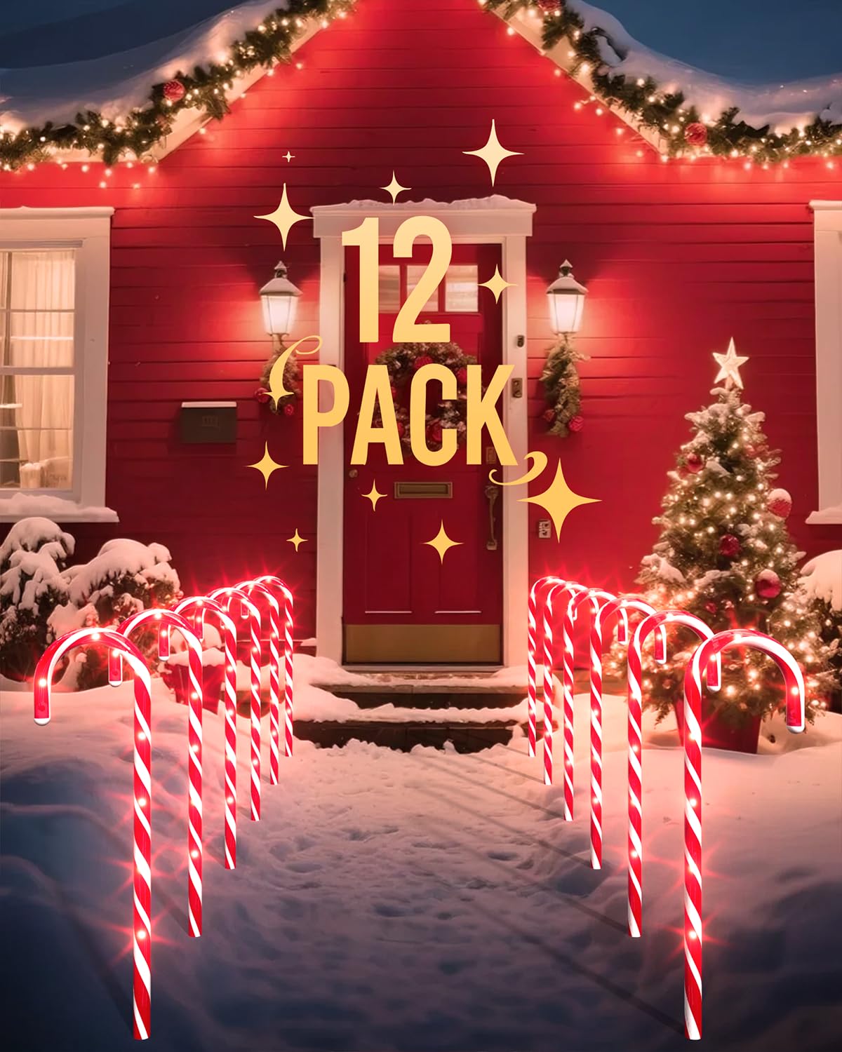 - 💡【Set of 12 Pack Christmas Candy Cane Pathway Markers 】Each Christmas candy cane light has male and female plug, connects up to 14 sets. Do not need to worry about the length of the light string is not enough, You have more choose for your yard decoration, It can be illuminated your home road. Create surprise and romance for your Christmas night. Christmas Lights That Make Your Neighbors Envy.