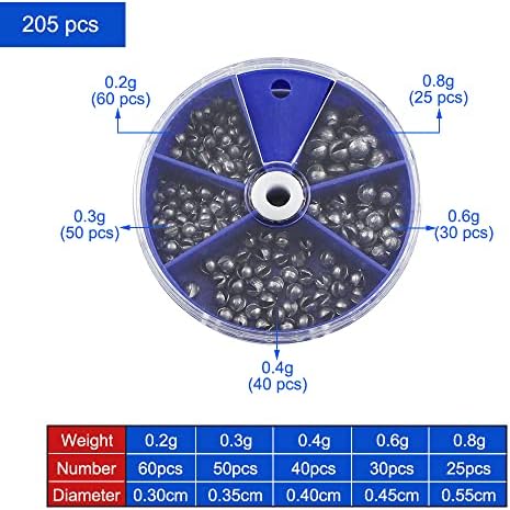 - 【Multi-Specification】There are 5 sizes in a box, 0.2g 60pcs; 0.3g 50pcs; 0.4g 40pcs; 0.6g 30pcs; 0.8g 25pcs, 205 pieces in total.