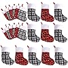 CCINEE 24pcs Christmas Mini Stockings, 9" Snowflakes Stocking Black White and Black Red Buffalo Plaid Christmas Stockings Fireplace Hanging Stockings for Family Holiday Xmas Party
