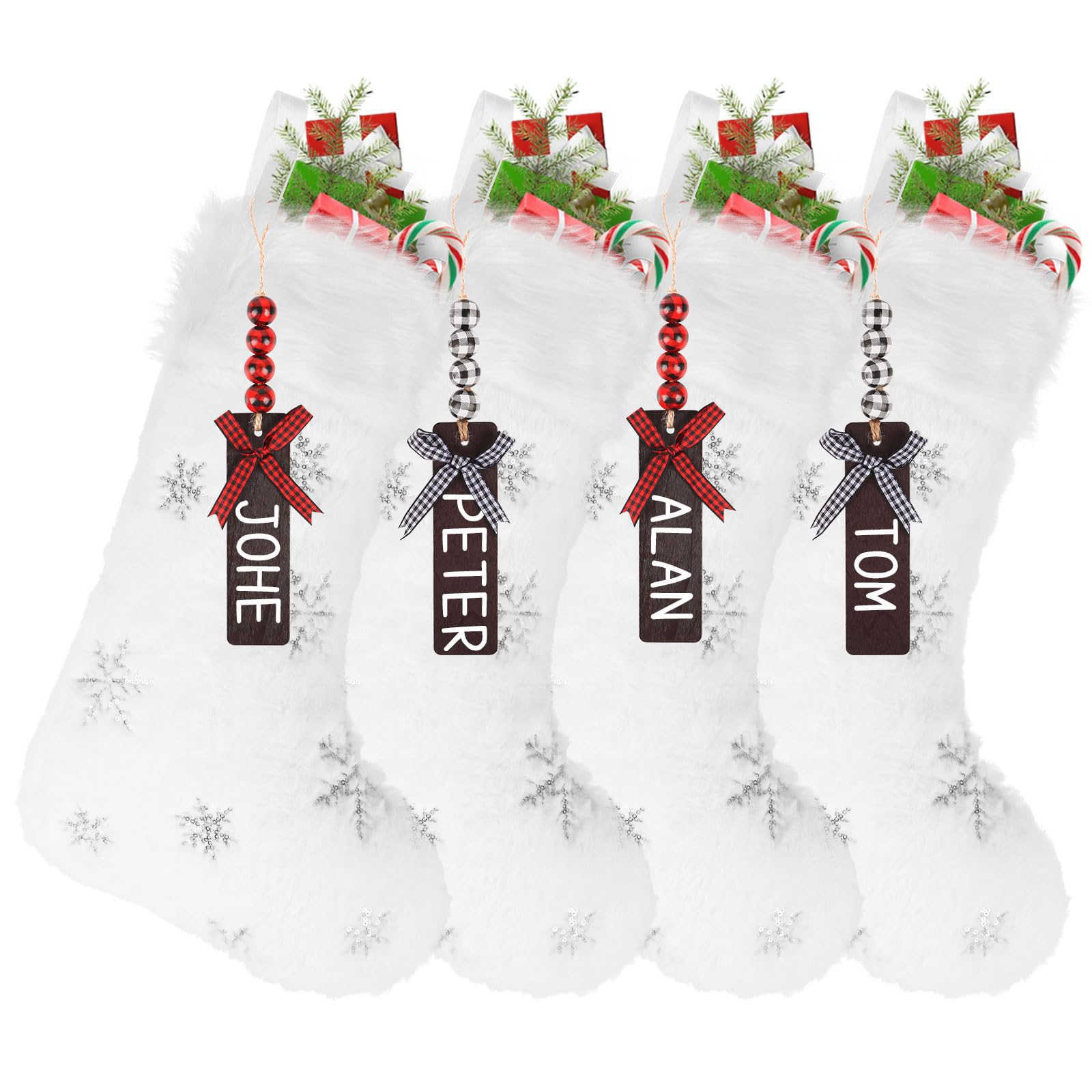 - Design: Two styles include black and white little plaid design , black and red little plaid design with soft fleece white cuff. At the same time, dotted with a lot of white snowflake. Perfect small gift wrap for friends, family, co-workers. Beautiful holiday decor, ready to hang on stocking holders on fireplace mantel.