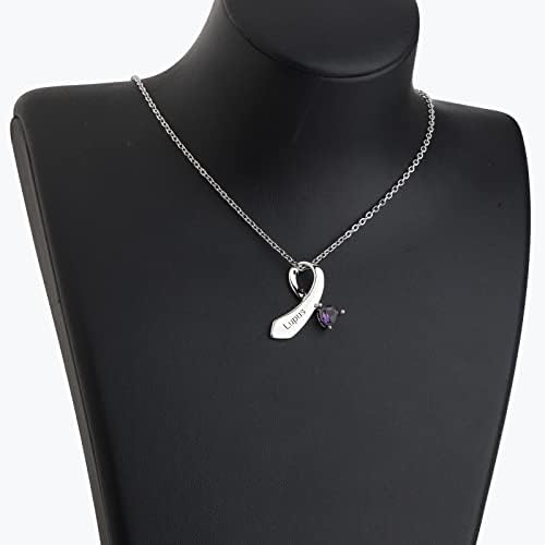 CENWA Purple Ribbon Pendant Necklace - Lupus Awareness Gift for Lupus Survivors