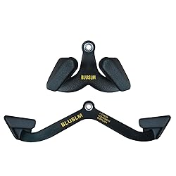 Reliable Quality: Constructed of heavy duty steel with 11mm thickness, high quality rubber coating 6mm,total 17mm thickness, makes the LAT pulldown bar much sturdy without worrying about bending, cracking and coating breaking off Special Design: Dipping rubber encapsulation that provides soft and supper comfortable neutral grips to avoid the problem of rust and discomfort caused by prolonged hand grips. The ergonomic V-shaped Pro lat bar enables users to change the way of back muscle workout, fully builds the back muscles, making exercise more effective Upgraded LAT Bar: Our ergonomic lat pulldown bar is much comfortable than regular commercial gym attachments. After use some time, you will find it is perfect for physical therapy exercises, ideal choice for anybody to use for a variety of activities. Once you use it you won’t go back to the traditional cable attachments. You will not regret to have our BLUSLM grip Fast Build Back Muscles: All the back handles are customized according to back training. Perfect for tricep extensions, heavy pull down and row movements, eliminating the wrist pain and tennis elbow. Effectively strengthen trapezius, latissimus dorsi, Levator scapulae and other back muscles 2-Piece T Bar Row Attachment Set: This cable attachment bar set includes 2 different strength training bars, one long lat pull down bar and one short lat bar, to meet various workout needs