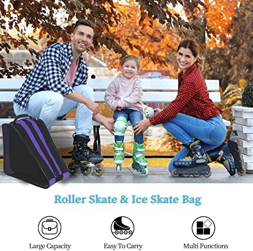 Why choose Gooyule figure skate bag? The roller skate bags for women mens girls and boys is designed with sturdy and durable nylon cloth that is not easy to crease.Large capacity like ice skates case.Adjustable shoulder straps make it easy for you to carry your iceblades ice skates、mens hockey skates、double-blade ice skates for kids、skate-blades case、inline skate backpack and roller skate accessories. Strong tear resistance and longer service life. The breathable mesh design for both sides of the roller skate backpack keep roller skates fresh and no sweat,also made you can intuitively see your beautiful iceblade ice skates and roller skate covers. The skate bag for women suit many occasions, no matter you are in the park、at skating rink,or participate in the normal roller skating competition, it is a good helper for you to carry the roller skate assesories. Large-capacity space not only can holder speed ice skates for youth boys, but also inline skates accessories, water cups, and walkmans that bring you great convenience. Product Name: Roller Skating Bag or Ice Skating Bags Specification: Large Size: 15.3*15.3*11 inches/39*39*28 cm Per Weight: 0.74 pounds/340g Color: Purple/Green/Black Tip: A large size roller bag fits most roller skates or Inline Skate and convenient for you to store more sports equipment. Each color represents 1 seperate roller skate bag.For example,when you choose Blue+Pink+Red, you get 3 seperate ice skate bags, 1 blue roller skate bag, 1 pink inline skate bag and 1 red ice-skate If you only choose green roller shoe bag, then you will get 1 large size green adjustable shoulder roller skate bag. Enjoy relaxing shopping time. If you have any questions about our items, please feel free to contact us first.