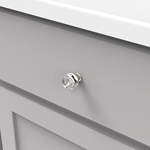Hickory Hardware 10 Pack Solid Core Kitchen Cabinet Knobs, Luxury Cabinet and Dresser Knobs, Handle Pulls for Doors & Drawers, 1 Inch, Crysacrylic with Satin Nickel, Midway Collection