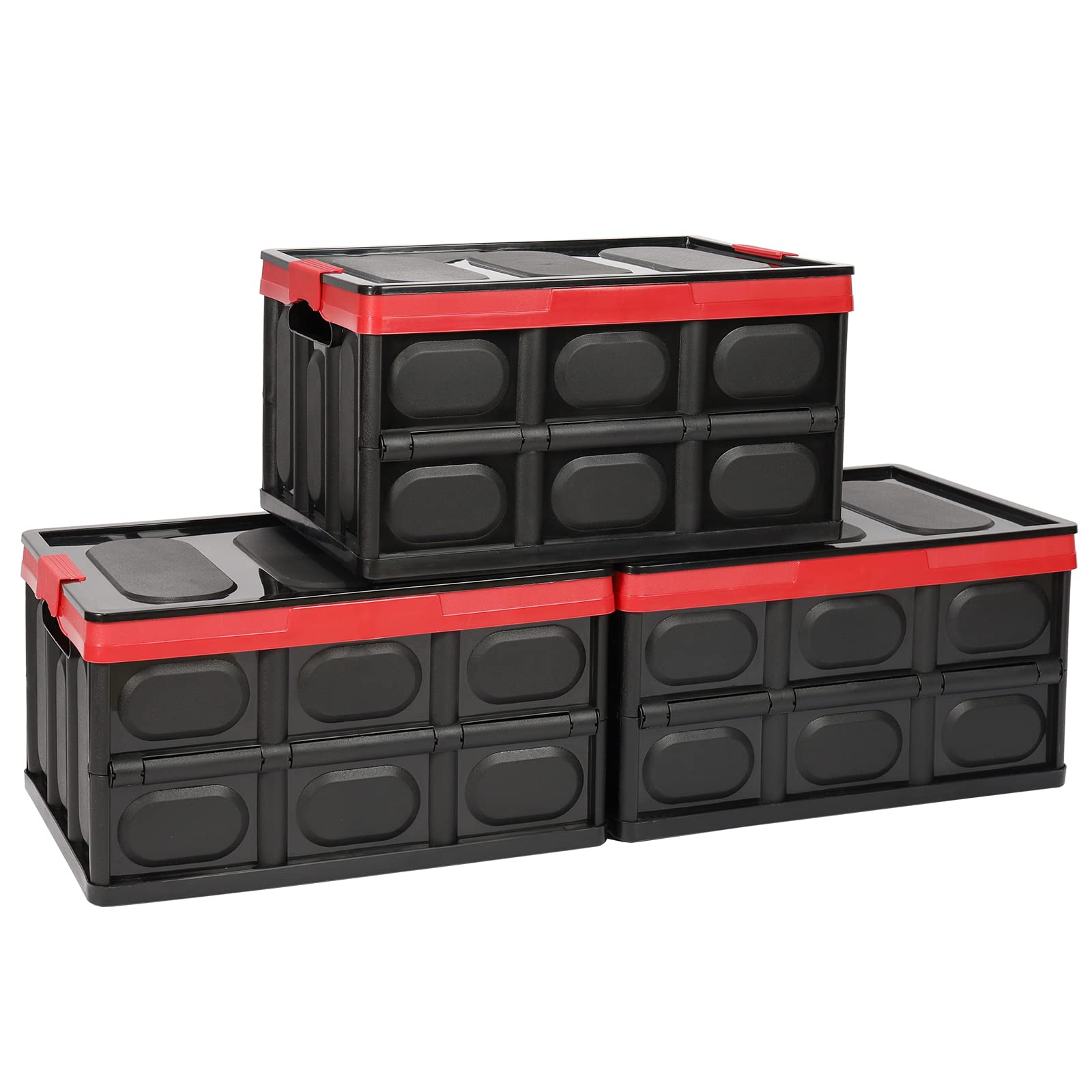 - Package and Size: Three-pack of black stackable storage bins, Opened size: 16.7" L x 11.4" W x 9.25" H, folded size: 16.7" L x 11.4" W x 2.36"H. Made of thickened PP material A single storage box weighs 2.7 pounds and has a capacity of 30 liters
