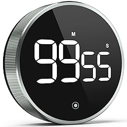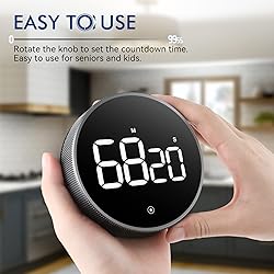 EASY TO USE & LARGE LED SCREEN: Just rotate the timer's knob to set the countdown time. The large 3.8-inch LED screen allows you to easily check the remaining time, which can be easily used by both the elderly and children. NOTE: Requires 3x AAA 1.5V batteries (Not Included) MULTIPURPOSE TIMER: The Secura digital timer can count down from 99:55 to 0, or as a stopwatch from 0 to 99:55. No Loud Ticking -- perfect for helping students focus on time management for study, showers, games, and more MEMORY FUNCTION: This kitchen timer can memorize the last use set. After the timer has reached 00:00, simply press the button to recall the previous countdown time, and then press the button again to start the countdown THREE VOLUME LEVELS & TWO BRIGHTNESS: This timer has 3 volume settings: loud (80-90 dB), Soft (60-75 dB), Mute - flashing digital numbers will remind you the time is up. Two Brightness Modes -- Always On Mode/ECO Mode MAGNETIC AND STAND DESIGN: Magnetic timers can be attached to steel places such as refrigerators, cookers, classroom whiteboards, gyms, etc. Or you can pull out the telescopic stand (two different angles) to place on any flat surface