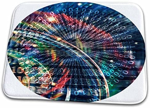 Dish Drying Mat - Cyberspace 0101010 – blue binary code Digital Abstraction Art - Cyberspace