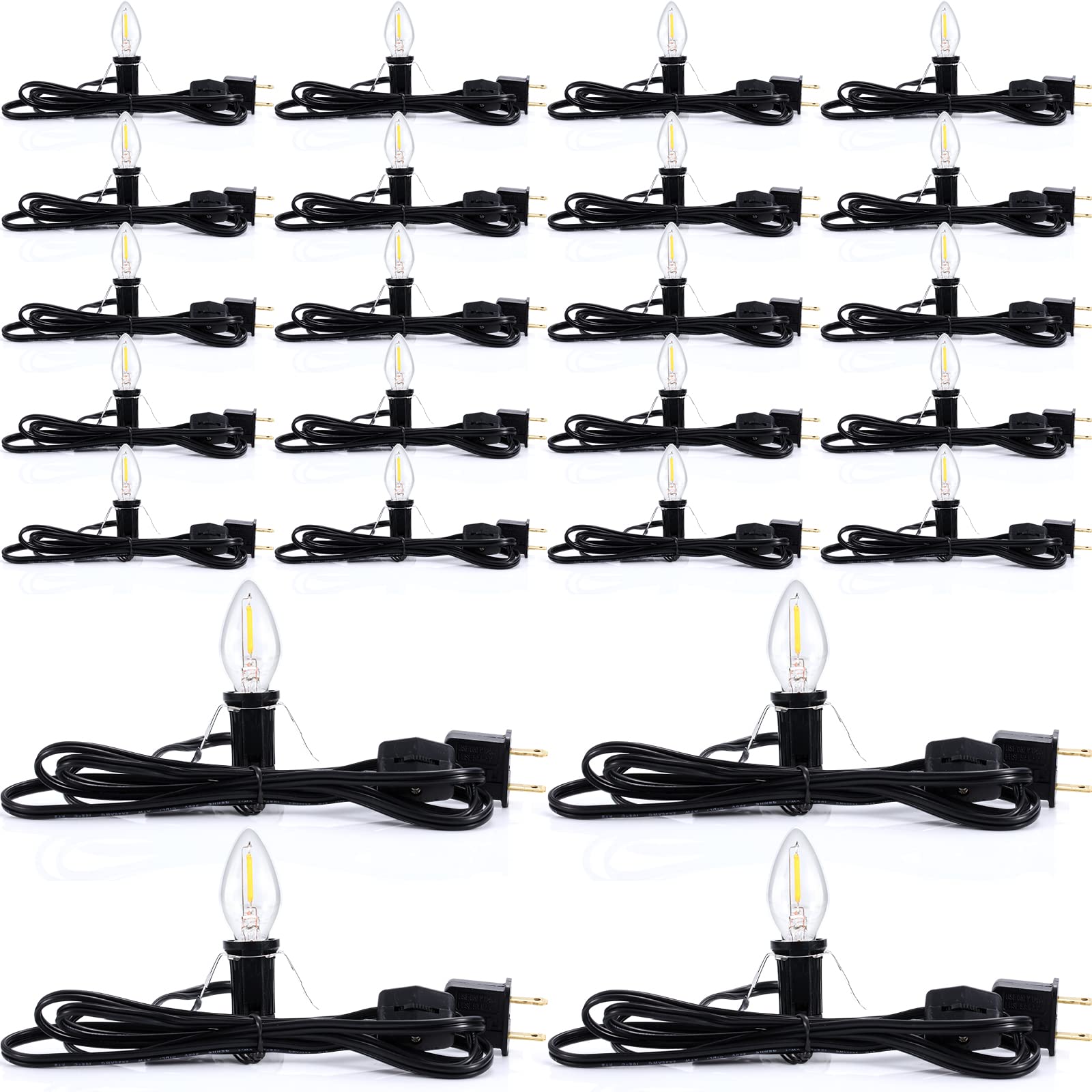 Coume 24 Packs Accessory Cord with LED Light Bulb, 6 Ft Warm Light Accessory Cord Kit (White)