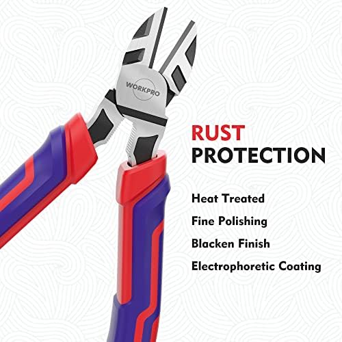 WORKPRO 6” Wire Cutters Heavy Duty CRV Steel, Diagonal Pliers for Cutting Wires Craft, Comfort Grip Handle