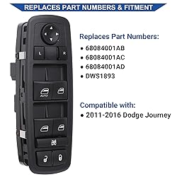 🚗【Compatibility】This master window switch control compatible with 2011 2012 2013 2014 2015 2016 Dodge Journey 2.4L / 3.6L 🚗【Replace Part】This master window control replace Dodge front left driver side door lock window switch OEM Part No 68084001AB, 68084001AC, 68084001AD, DWS1893 🚗【Package Content】1 x electronic window controller + 1 x switch removal tool 🚗【Important】Without an exact match of 1 "AUTO" + 13+8 pins, this switch will not be compatible with your vehicle. Check your original switch thoroughly to ensure you are ordering the correct switch 🚗【Purchase Without Worry】 If the power window switch has any problems, simply contact us for giving you a satisfactory solution