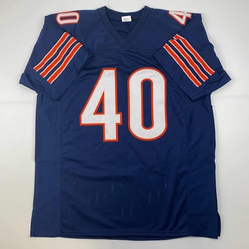 Facsimile Autographed Gale Sayers Chicago Blue Reprint Laser Auto Football Jersey Size Men's XL