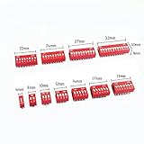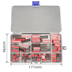 Pitch : 2.54 mm. 11 types pins: 1/2/3/4/5/6/7/8/9/10/12 positions DIP switch. Color: red. High quality slide type double row dip switches mechanical life: more than 3000 cycles. Non-Switching Rating: 100mA 24V DC; Switching Rating: 25mA 24V DC; Contact Resistance: 50mΩ; Insulation Resistance: 500MΩ/DC500V. The DIP switch is an address switch that adopts the principle of 0/1 binary coding. It is widely used in products that require manual programming such as data processing, communication, remote control and anti-theft systems. Package Includes: Total 55 Pcs DIP Switches, each type is 5pcs. Come with a transparent plastic box for easy storage.