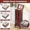 - [Flip-up Mirror with Divided Compartments] Lift the top lid, you will find additional divided compartments, ring rolls and a vanity mirror to help you perfect your look as you head out the door. And the compartment with soft lining can protect your pieces from tarnish and scratches. The lid also keeps the mirror and your jewelry free of dust.