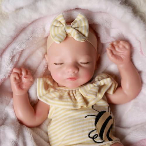 - [Detalles Realistas] Características pintadas a mano incluyendo venas sutiles, rubor, pestañas enraizadas y extremidades arrugadas le dan a esta muñeca de silicona completa una expresión de sueño increíblemente realista y relajante que refleja a un bebé de verdad.