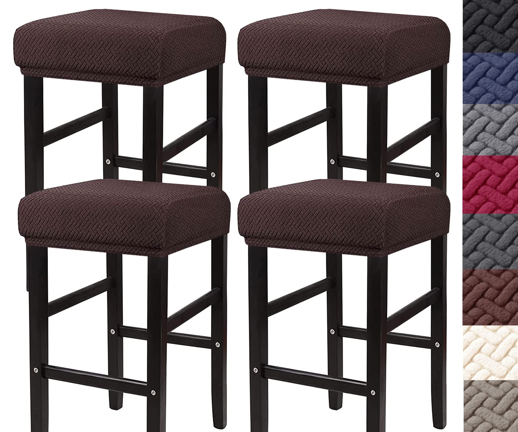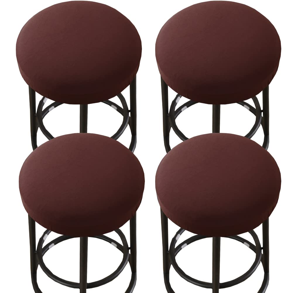 - EASY TO INSTALL: This round bar stool coves with elastic band around the hem makes the stool slipcover stays in place better. The perfect combination of elasticity and shrink-free will minimize the time you spend straightening and smoothing. Full coverage showcase a brand new, longer-lasting chair.