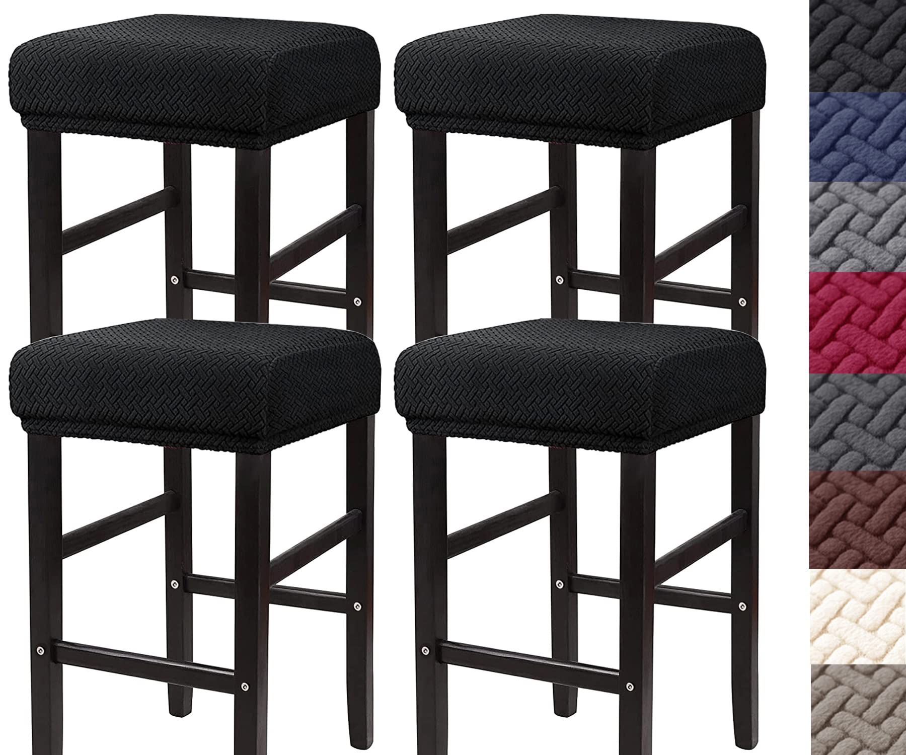 HFCNMY Stool Covers Round,4 Pack Stretch Round Bar Stool Covers Washable Bar Stool Seat Covers Stool Cushion Slipcover Elastic Bar Chair Covers for 13-18 Inch Chair (Black)